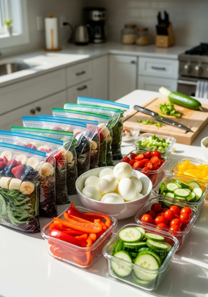 Instead of cooking elaborate fitness meals, stock your kitchen with quick, healthy options. Pre-chopped veggies, boiled eggs, or smoothie packs can make eating healthy effortless.
