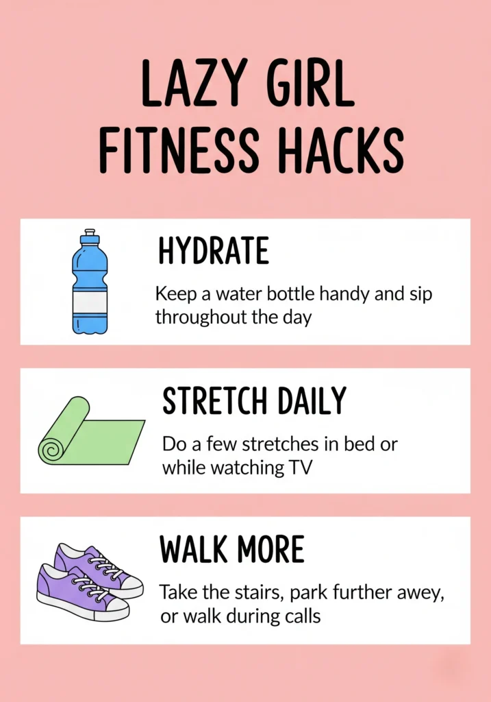 You don’t have to spend hours at the gym or follow strict diets to stay fit. With these 10+ approved lazy girl fitness hacks, you can build healthier habits that fit your lifestyle—without extra stress or pressure.