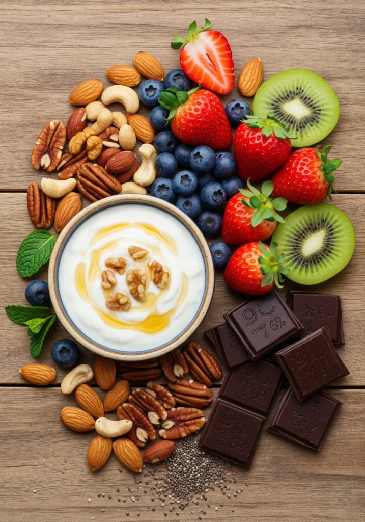 Fitness isn’t just about movement—it’s also about nutrition. Keep healthy snacks like nuts, Greek yogurt, fruit, or dark chocolate nearby instead of reaching for chips or candy.