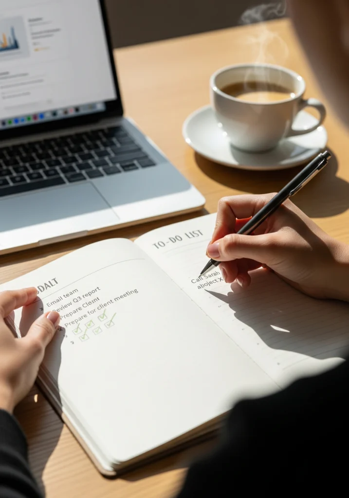 Write a short to-do list for the next day. This reduces decision fatigue in the morning and helps you start your day with focus.