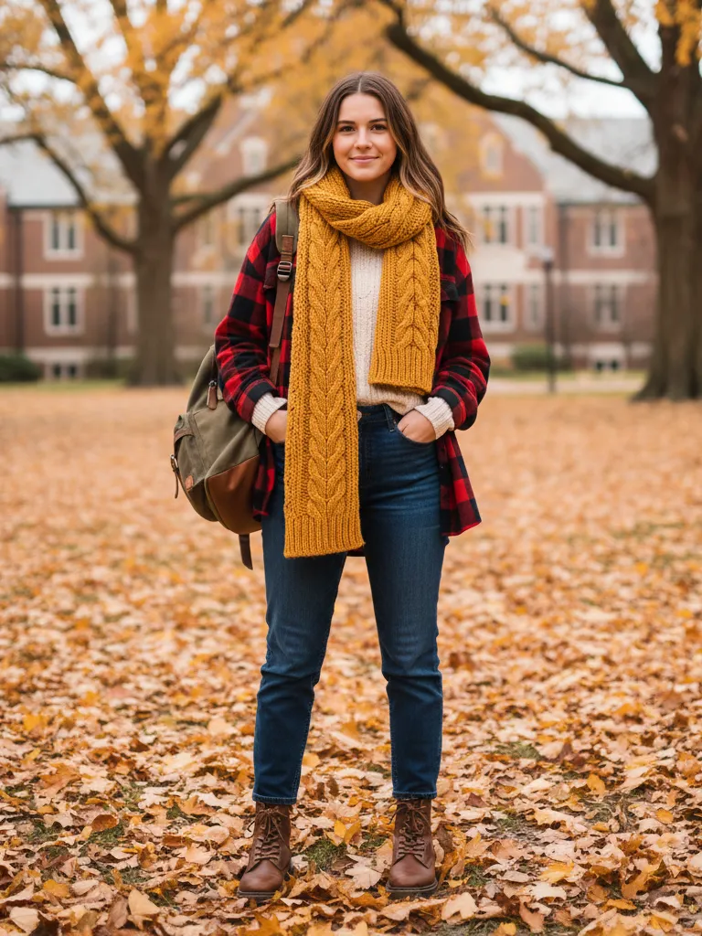 A timeless look for school – plaid skirts with oversized sweaters or cardigans.