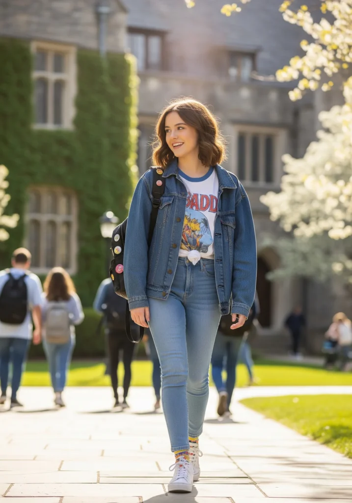 - Comfort for long hours – Sitting in classes, walking between halls, and carrying backpacks require practical clothes.