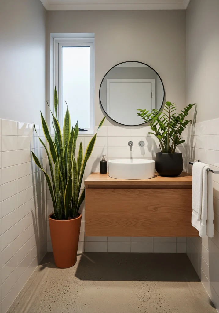 Plants naturally filter airborne toxins, reduce dust, and increase humidity making your bathroom fresher and healthier.