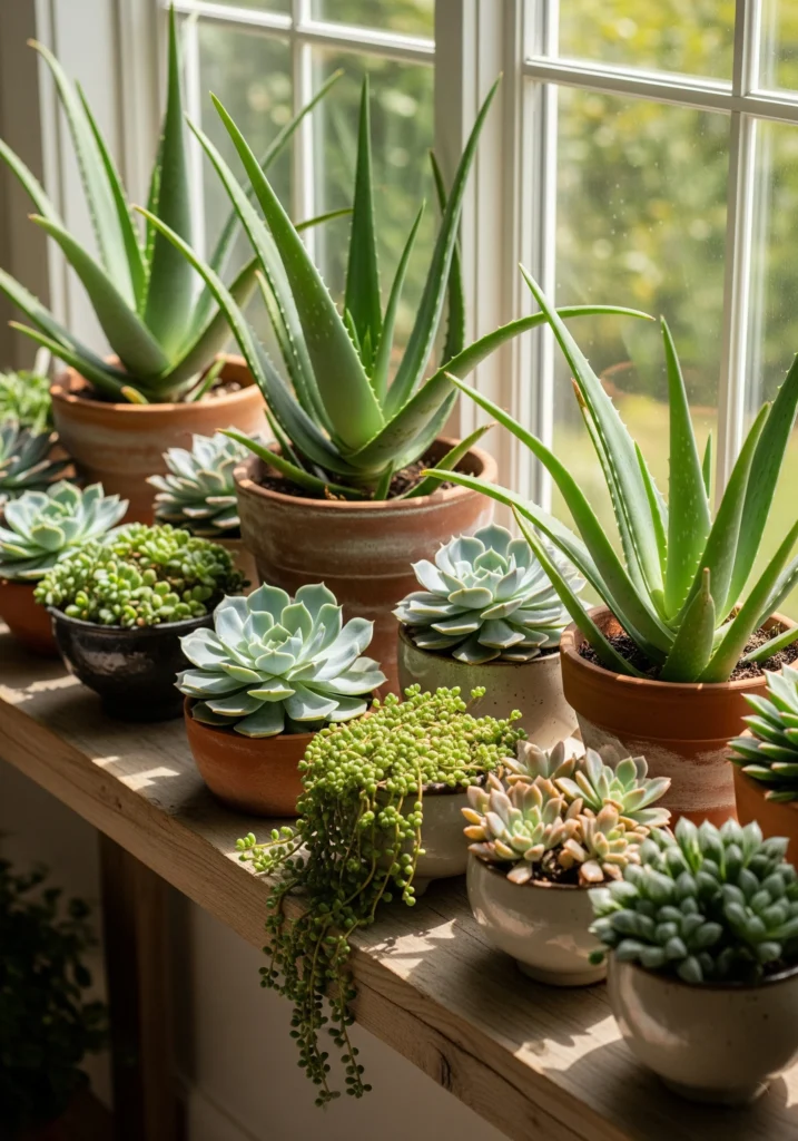 Ideal for bathrooms with windows, aloe vera doubles as a healing agent for burns and skin care.