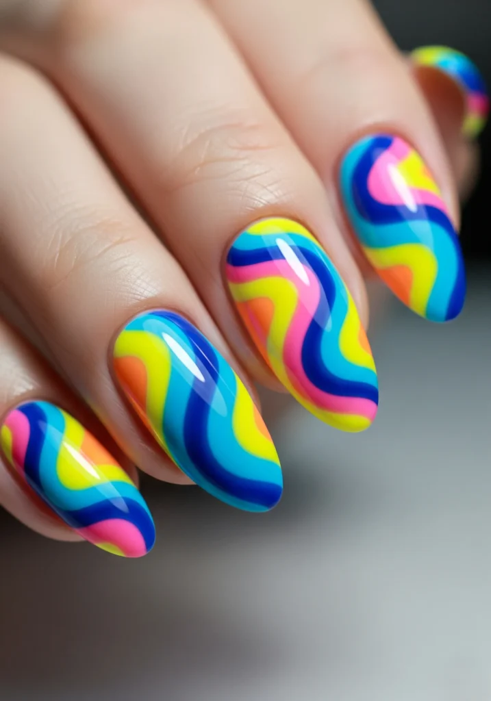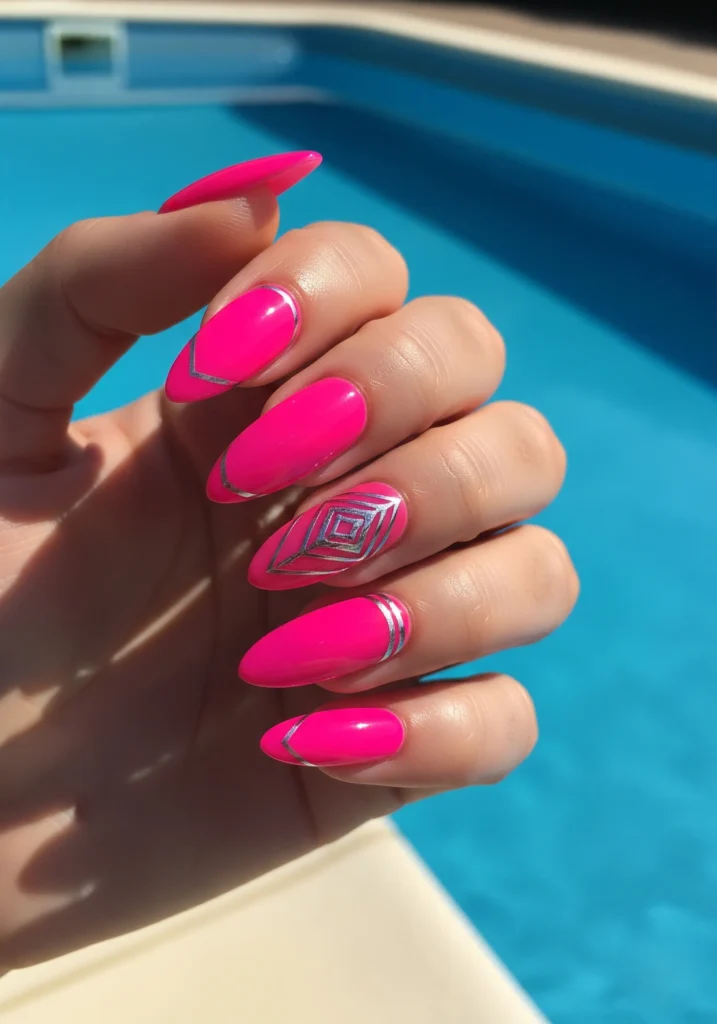 Glitter, chrome, and bold neon shades that pop under summer lights.
